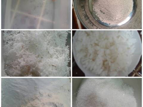 Satukan nasi dengan air kelapa blender halus.kalau dah halus masukan gula blender sampi rata