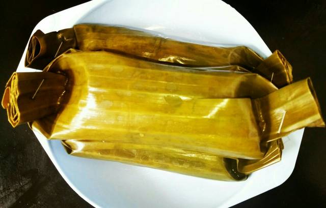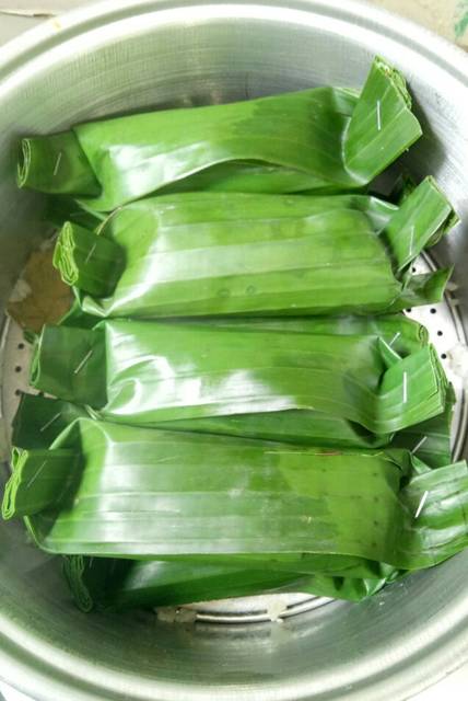 Setelah air surut dan beras 3/4 matang, bungkus nasi dan tumisan daging dengan daun pisang. Kemudian kukus di kukusan selama kurlep 15-20 menit. Karena nasinya tadi sudah 3/4 matang jadi bisa lebih cepat mengukusnya.