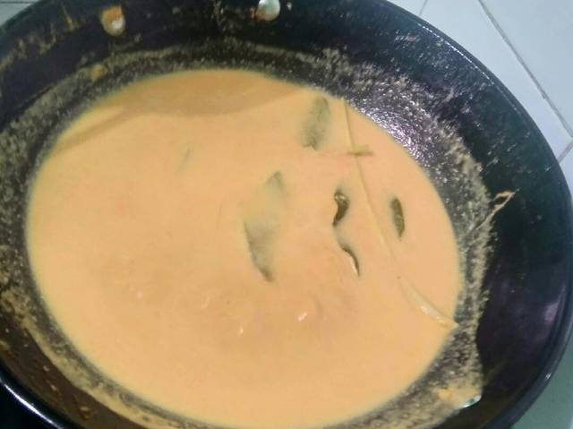 Aduk hingga kuah mulai berubah kecoklatan (ditandai minyak dari kelapa sudah keluar)