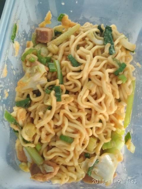 Masukkan mie telor aduk rata bumbu Dan sayuran sampai rata masukkan daun bawang aduk sebentar, siap dihidangkan