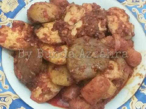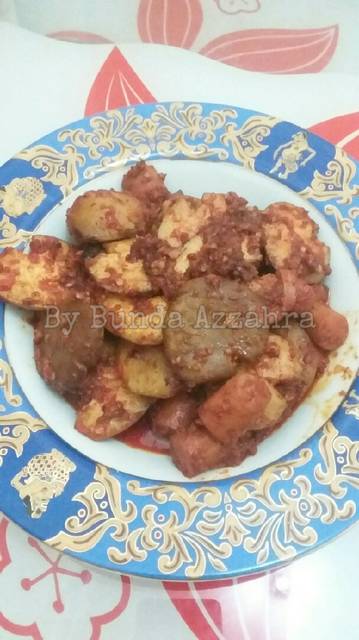 Tumis bumbu hingga harum dan mengeluarkan minyak dan warna menjadi merah pekat. Masukan garam lada gula. Tes rasa