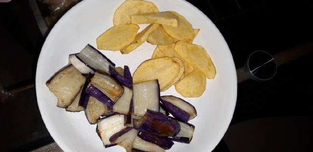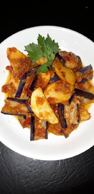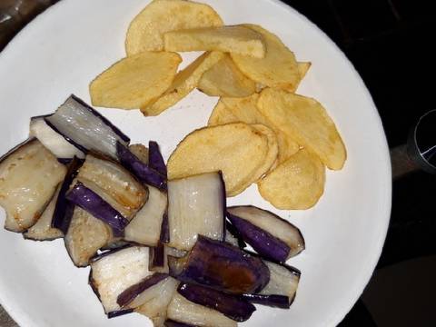 Goreng terong dan kentang setengah matang