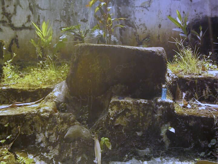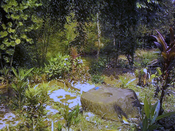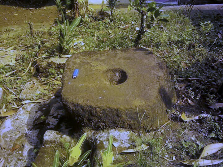 Sebuah batu lumpang dekat aliran sungai putih di grumbul Karangbenda, kelurahan Berkoh, Purwokerto Selatan, yang berfungsi sebagai sarana ibadah pra Hindhu Buddha pada masanya.