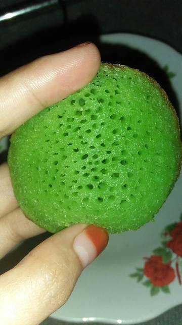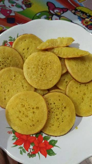 Panaskn teflon tuang adonn ke teflon tunggu smpai muncul lubang(sarang) lalu tu2p,sy ngisi ny gk pnuh2 bun
