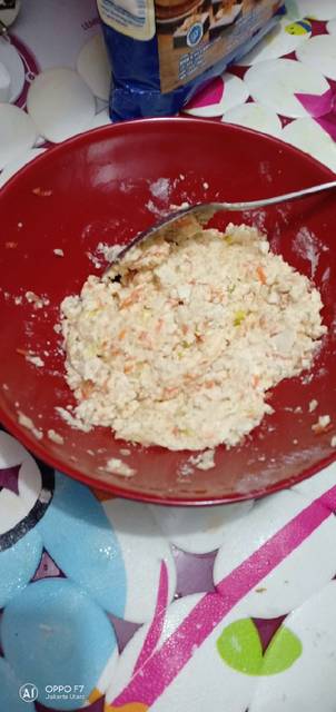 Tahu dihaluskan pakai sendok atau garpu, setelah halus kmudian tambahkan tepung terigu,wortel, daun bawang, dan bawang putih. Masukkan semua bumbu dan tes rasa. utk ukuran besar dan kecil