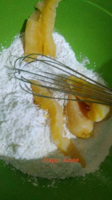 Encerkan gula pasir dg air hingga larut gk usah sampe mendidih. Sisihkan. (lupa ambil fotonya proses ini)