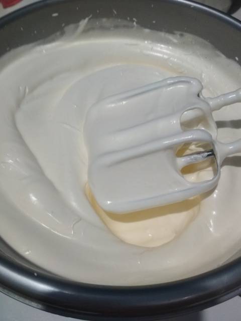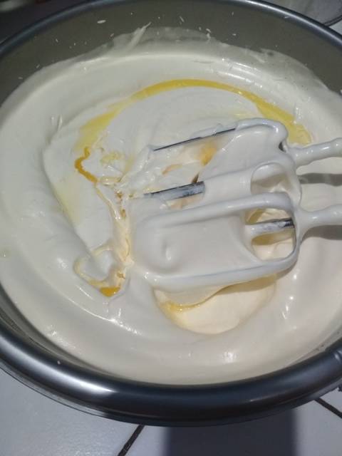 Mixer gula pasir,telur,sp,vanilli dan garam.mixer dgn kecepatan tinggi sampai mengental dan putih berjejak