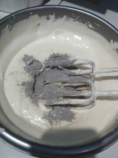 Masukkan tepung ketan hitam dan mixer sebentar dgn kecepatan rendah jg..asal tercampur rata aja.