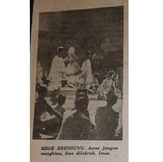 Disamping lagu-lagu tersebut, untuk membangkitkan semangat kekuatan magic dalam boneka, juga dialunkan lagu-lagu yang sifatnya wangsalan/pantun sehingga pertunjukkan kian semarak. Kemudian ditawarkan kepada penonton, siapa yang akan atau berminat memegangi Brendung, dengan catatan jangan coba-coba menghina/mencaci maki boneka tersebut. Sebab, bila mengucapkan kata-kata yang bernada mengejek/menggodanya, meski pemeran utama itu hanyalah benda mati belaka, akan dapat menyerang dengan mengejar dan memukulinya.