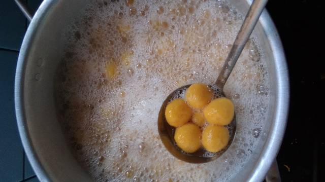 Nah adonan yang sudah dibundel-bundel tadi bisa langsung dimasukkan ke dalam air yang sudah mendidih, kemudian masukkan gula merah, santan dan garam. Takaran sesuai dengan keinginan aja. Aduk hingga merata, santannya jangan sampe pecah agar rasa dan tampilannya tetap menggoda. Tunggu beberapa menit untuk proses pematangan.