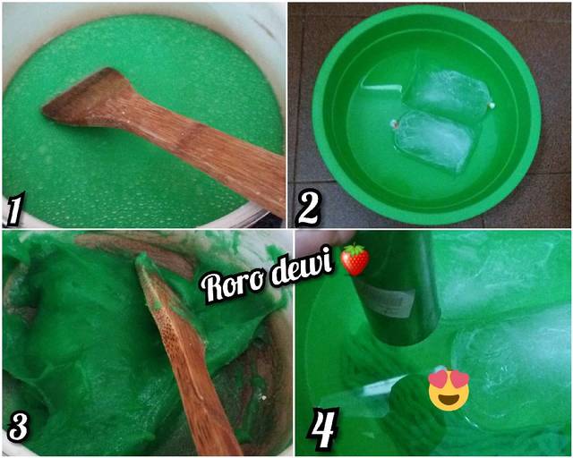 Masak santan dengan api kecil, sambil di aduk jangan pecah santan. Matikan. Dinginkan.