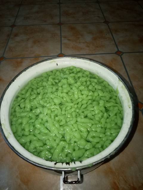 Angkat dan siapkan cetakan cendol, dlm wadah yang sudah isi air dan es batu.