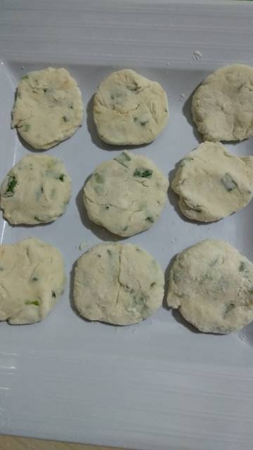 Ambil 1 sdt adonan / sesuai selera dan bentuk pipih, lapisi tangan dengan tepung saat membentuk biar gx lengket