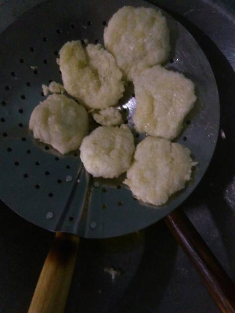 Tuang adonan yg direbus td ke sisa tepung tapioka,aduk2 sampai kalis.