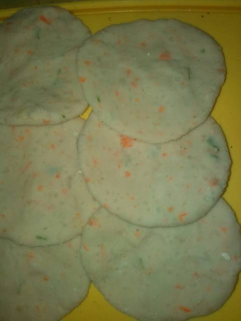 Perlahan lahan tambahkan tepung kanji hingga adonan kalis.