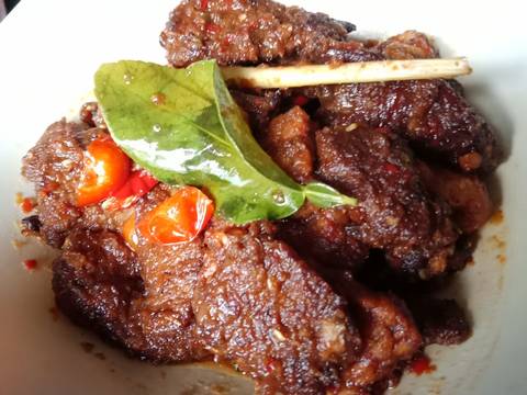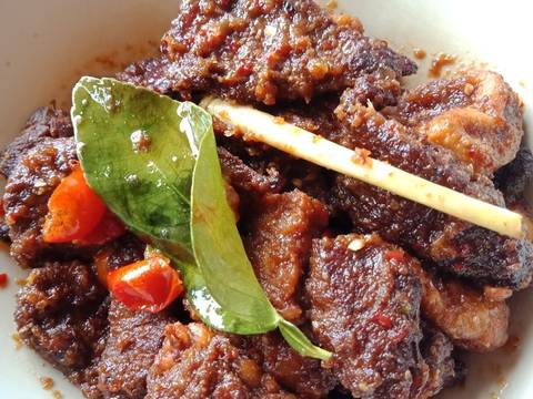 Setelah bumbu meresap goreng daging yg sudah dibumbui(jangan terlalu matang) dan iris cabai merah tomat, asam, serai, daun salam, dan daun jeruk