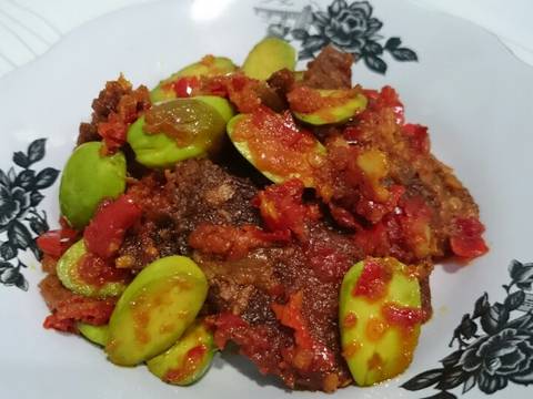 Tumis bumbu ulek sampai matang. Masukkan pete dan sedikit air. Masukkan garam, lada, royco, gula. Aduk2 sampai air menyusut dan pete setengah matang.. Masukkan daging goreng, aduk rata. Pastikan air benar2 kering..