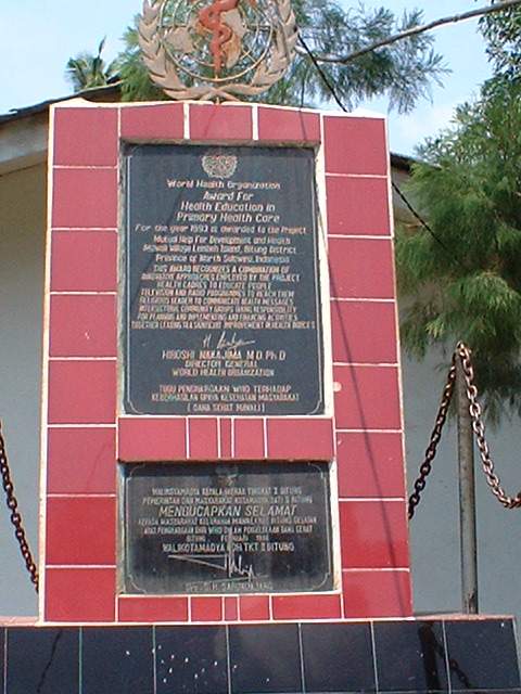 Laporan pihak Dinas Kesehatan Kota Bitung ini, agaknya terus berlanjut hingga ke Badan Kesehatan Dunia (World Health Organization WHO). Karena itu, pada tahun 1993, tanpa disangka pihak Pemerintah Kota Bitung dalam hal ini Walikota saat itu, Drs. S.H. Sarundayang diundang ke Markas WHO, sekaligus menerima penghargaan berupa prasasti penghargaan dari Direktur Jendral WHO, Hiroshi Nakajima, MD, PhD serta uang tunai sebenar $5.000.