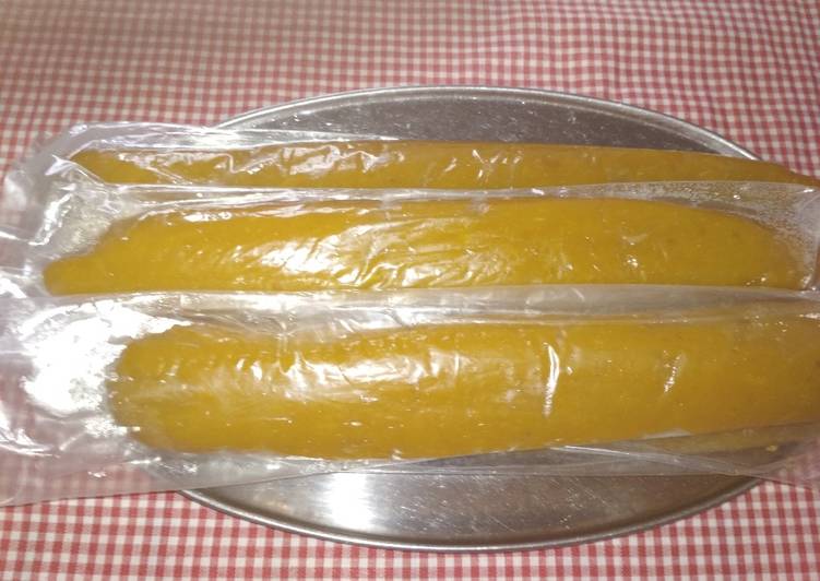 Lalu ankat, masukan dalam kantong Plastik putih kap 2 kg, Bulatkan memanjang lalu simpan,bila mau disajikan baru di potong-potong.