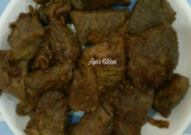 Goreng daging dengan minyak yg udah dipanaskan, jika tidak suka terlalu garing dan keras di bagian luar nya lebih baik digoreng asal saja ya