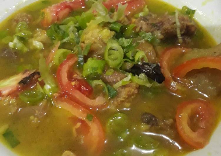 Msukan kdlm rbusan daging dn jeroan msukan masako dan kara smbil di aduk2 tnggu kira2 10 menit angkt dan sajikan