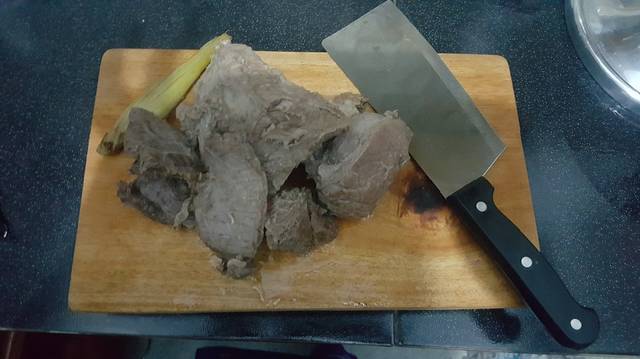 Angkat, lalu potong2 setebal 1cm,sisihkan dahulu,kalo mau lebih empuk boleh di pukul2 pake pukulan daging