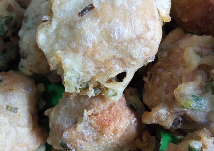 Campur semua bahan adonan, jangan terlalu kental yah, juga jangan terlalu encer, supaya hasilnya ga keras.
