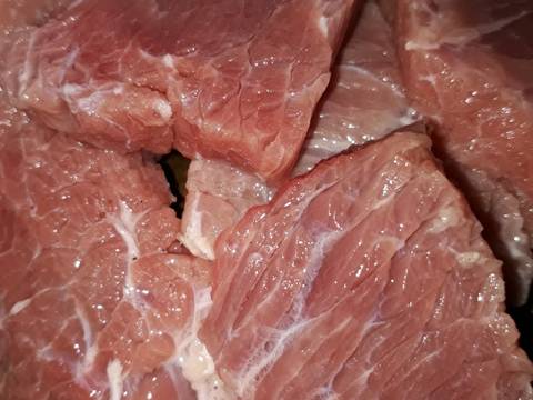 Bersihkan daging dan potong sesuai selera peras daging biar keluar darah ny dan bersih