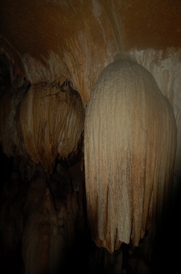 Gua yang ruangan depannya cukup besar/luas ini, sangat di sakralkan oleh para penduduk setempat sehingga keasrian dan kelestarian gua cukup terjaga. Gua ini mempunyai dua lantai, lorong atas yang cukup luas(± 75 meter),biasa dipakai oleh para penziarah untuk melakukan ritual tapa (Meditasi/Samadhi), pada ruang ini terdapat stalactit yang khas dan unik seperti bentuk wayang golek berjajar sehingga masyarakat setempat menamai gua ini gua Wayang. Lorong bawah sepanjang ± 210 meter berupa saluran air yang berujung pada lorong tertutup(sump). Letak gua ± 124 meter dari jalan desa dan sekitar 1.5 km dari jalan raya Karangnunggal, Gua indah dengan ornamen yang cukup bervariasi ini biasa dimanfaatkan untuk wisata budaya/ziarah karena sudah dikenali oleh para pengunjung dengan minat khusus, baik yang datang dari dalam maupun luar kota (Garut, Bandung, Jakarta, Semarang, Surabaya, Palembang dan sebagainya).