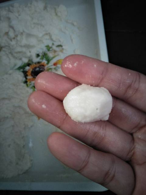 Tambahkan gula pasir, garam, dan tepung tapioka. Campur sempurna.