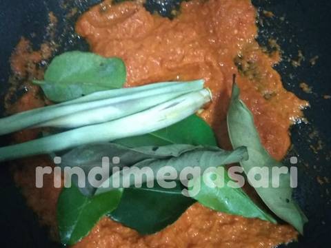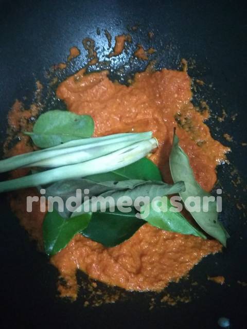 Tumis bumbu halus, lalu masukan daun salam, daun jeruk, dan sereh hingga harum.