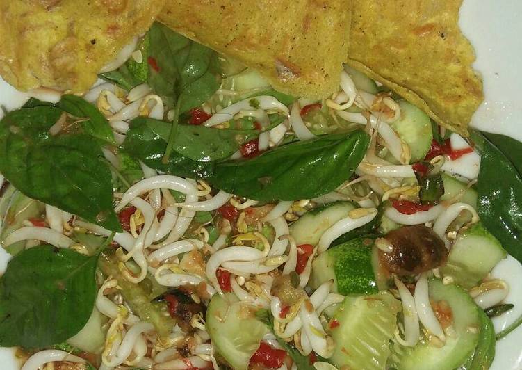 3. Potong potong sayuran lalu masukan ke cobek beserta bumbu. Aduk-aduk, tes rasa