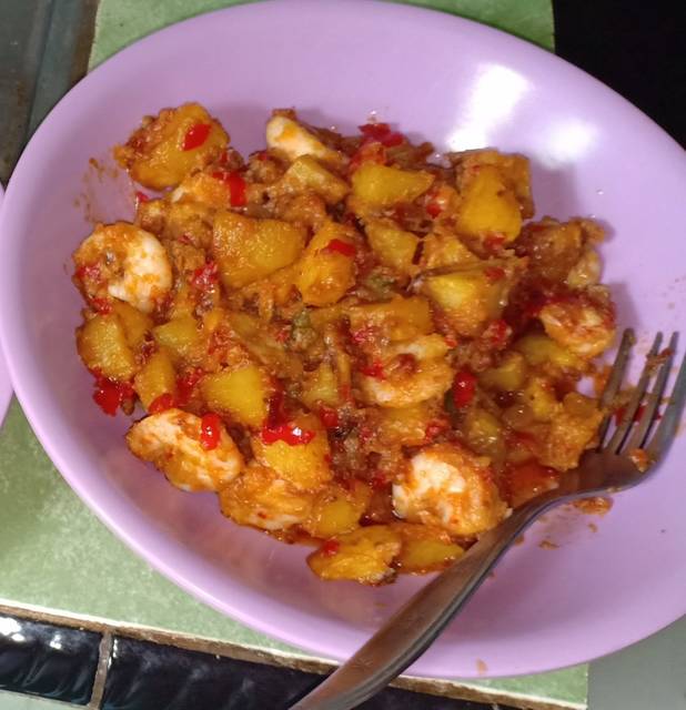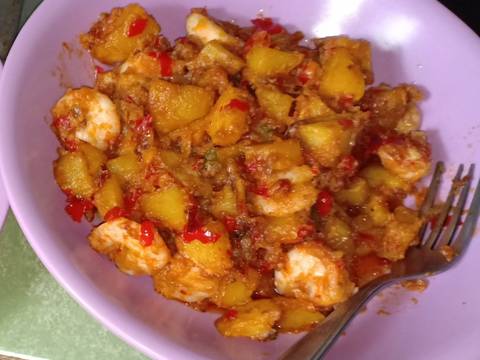Kentang udang balado siap dihidangkan
