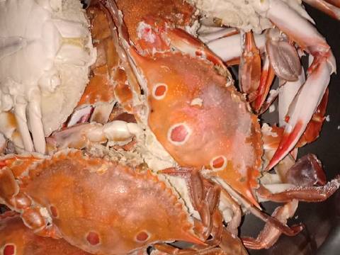 Setelah direndam dengan cuka kukus kepiting sampe cangkang berwarna orange lalu angkat