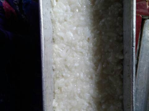 Masukkan ketan ke dalam loyang, tekan² dan padatkan. ðŸ"ŒAgar hasilnya bagus pilih loyang yg bisa menampung ketannya pas setengah loyang, sisa setengah loyang lagi utk srikaya jadi nanti keliatan seimbang antara ketan dan srikaya. Sisihkan. ðŸ"ŒLapisi loyang dengan plastik jika kira² loyangnya tipe mudah lengket/kue susah lepas.