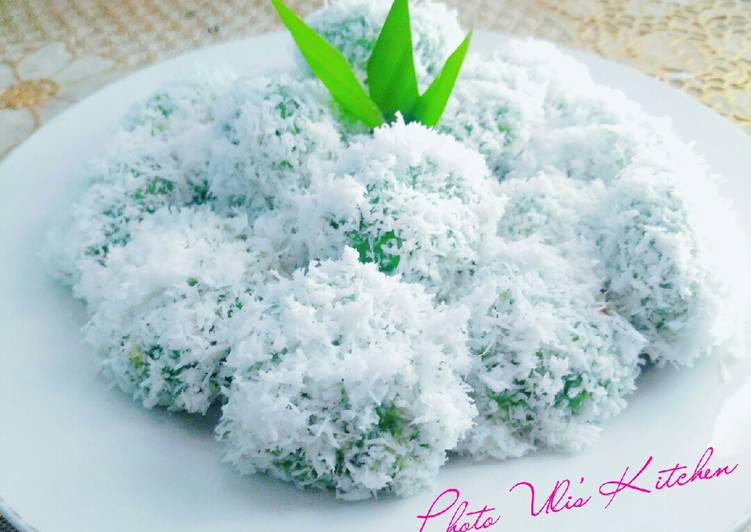 Campur Tepung beras Ketan dengan 1/4 Sdt Garam Aduk dengan Tangan.Pastikan tangan sudah dicuci bersih,atau kamu bisa menggunakan sarung tangan plastik.Kemudian Masukan air pandan sedikit demi sedikit,jika kurang bisa ditambah air biasa.Uleni hingga kalis dan dapat dipulung.Jika dirasa adonan sudah kalis pemakaian air bisa dikurangi.