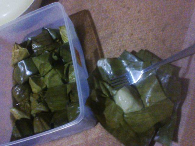 Setelah semuanya sudah di masukkan kedalam daun pisang,lalu di kukus sampai daun nya berbentuk agak kecoklatan
