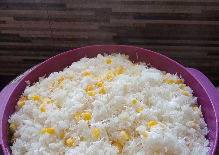 Masukkan jagung manis, tambahkan garam & gula pasir, aduk rata, kemudian kukus kembali hingga matang