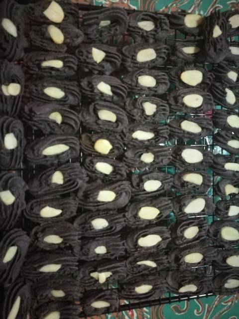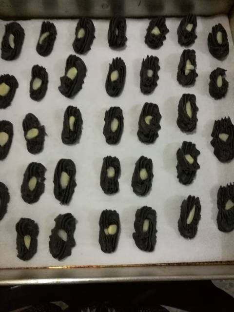 Masukkan loyang ke dalam oven & panggang selama 15 menit (sy pakai otang, kenali oven masing2 ya). Hati2 gosong, krn warna kukisnya hitam..