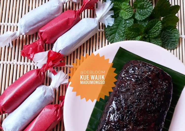 Membuat Wajik Madumongso. Masukkan semua bahan kecuali ketan dan tape kedalam wajan atau panci besar. Masak dengan api sedang hingga membentuk cairan yang kental dan menyerupai sirop/gulali. Kecilkan apinya.
