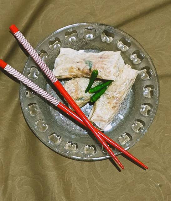 Ambil kulit tahu lalu isi dengan campuran isian.