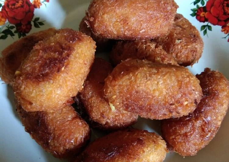Bentuk sesuai selera bulat/ lonjong. setelah itu di goreng dalam minyak panas dengan api sedang agar matang merata