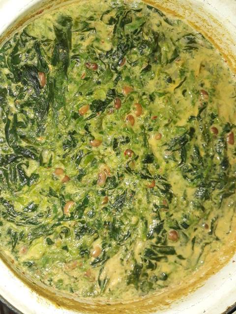 Masak sayur dan kacang merah bersamaan dengan santan Hingga mendidih.