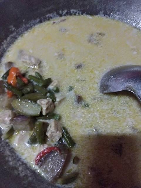 Setelah sayur layu masukkan santan encer aduk lagi sambil di cek rasanya,,tunggu sampai mendidih setelah mendidih masukkan santan kental aduk lagi supaya santannya tdk pecah