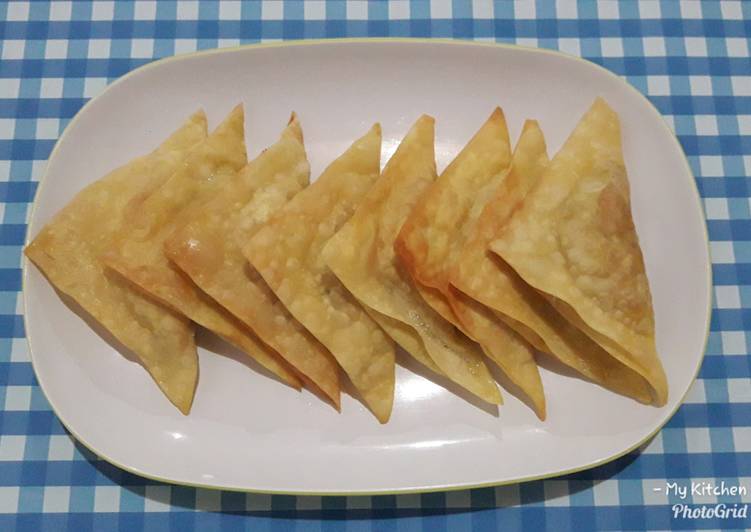 Goreng hingga kulit pangsit berwarna kecoklatan.