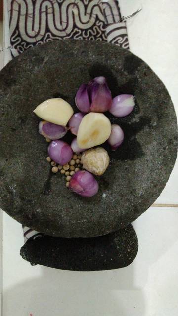 Angkat, sajikan bersama pelengkap: bawang goreng dan seledri.