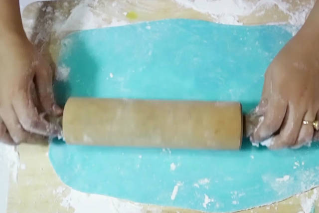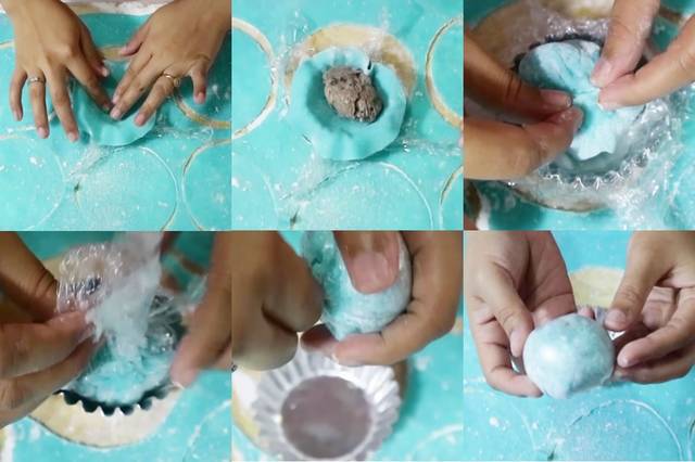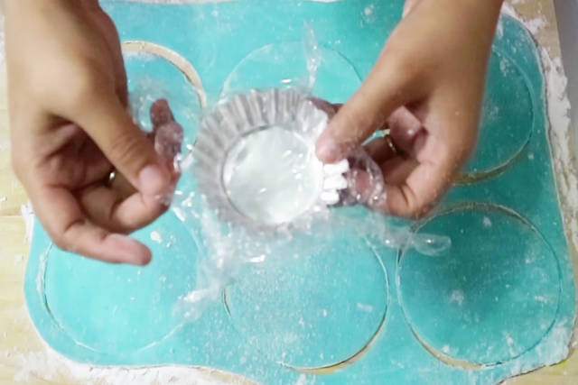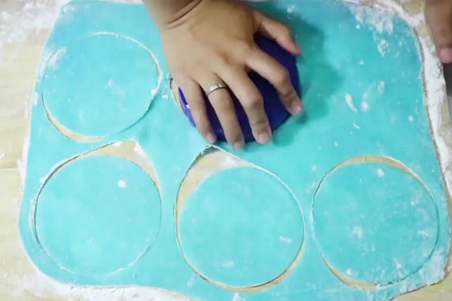 Cetak kulit mochi menggunakan benda berbentuk bulat