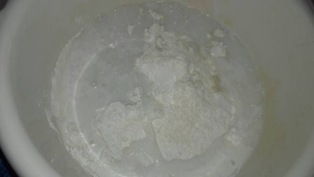 Campur semua bahan, kecuali pewarna makanan dan tepung maizena