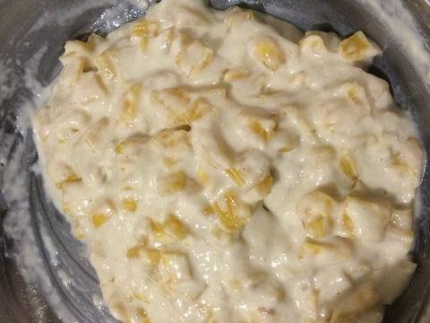 1. Campurkan terigu, gula, vanilla bubuk dan garam dengan air. Aduk rata. Potong dadu buah nangka. Campurkan dengan campuran terigu.