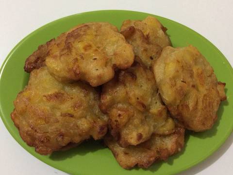 2. Panas minyak goreng. Masukan adonan gorengan dengan sendok makan. Goreng hingga kecoklatan. Balikan, masak sisi lainnya hingga matang. Setelah matang, angkat dan tiriskan. Sajikan selagi hangat.